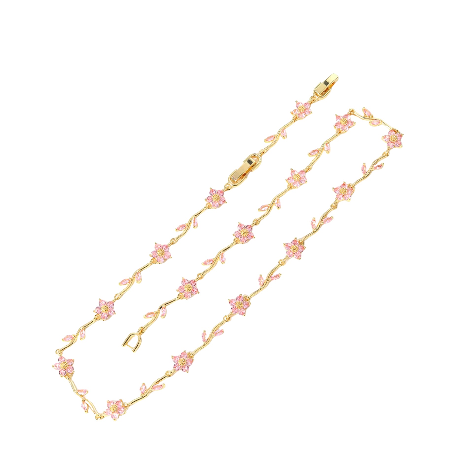 Pink Flowers Necklace Gold